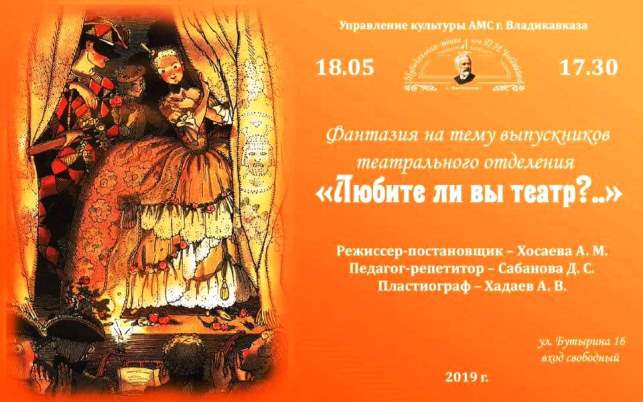 | Акция «Ночь музеев» во Владикавказе - 18 мая 2019 г. Учащиеся театрального отделения (преп. Засл. арт. РСО-Алания Бритаева Л. Н.) приняли участие в мероприятиях в рамках акции «Ночь музеев».